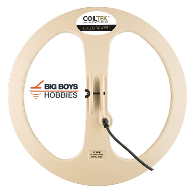 Coiltek 22″ Mono Goldstalker Search Coil. This water resistant, lightweight coil offers excellent search capabilities over large open areas. Compatible with the Minelab SD, GP, and GPX series metal detectors.