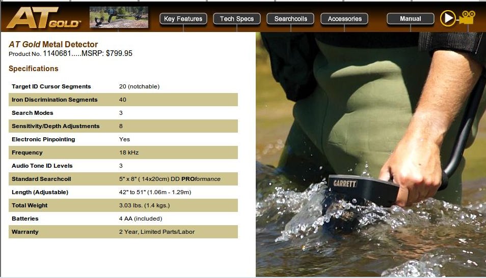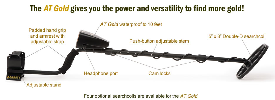 Garrett AT Gold metal detector was designed to find tiny gold nuggets in the most challenging prospecting environments, including shallow fresh water hunting.
