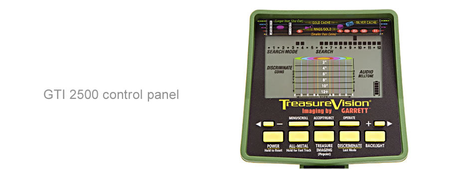 - Key FeaturesKey Features Graphic Target Imaging™ (GTI) shows true target size and depth Graphic Target Analyzer™ (GTA) identifies target’s conductivity True Digital Signal Processor™ (DSP) improves discrimination accuracy ScanTrack™ optimizes treasure signals based on search coil swing speed Ground Balance: automatic and also manually adjustable All Metal, Non-Motion Deepseeking Mode: allows hovering over target User-adjustable Volume, Threshold, Tone, Sensitivity, Discrimination Salt Elimination Aid: eliminate interference caused by wetted salt at beach Hip Mount Battery Pack: reduces detector weight for long searches FastTrack™ Ground Balance for use in All Metal Mode Surface Elimination: adjustable search aid ignores shallow, undesired items LCD Backlight: to illuminate LCD screen for improved visibility External Speaker and Headphone Jack: quarter-inch (1/4″) size Coin Alert Beltone Audio™: Garrett sound for high conductivity targets Last Mode Switching: switch from All-Metal into last-used discrim. mode Search Modes (6 plus electronic pinpointing) All Metal Zero Jewelry Custom Relics Coins Pinpoint