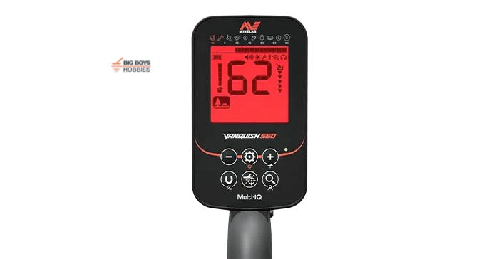 The VANQUISH® 560 PRO-PACK is the ultimate packout for professional-level performance in a simplified, intuitive design. Powered by Minelab's proven Multi-IQ® technology, it scans across multiple frequencies at once for reliable target identification and faster target recovery in changing ground. With 30 discrimination segments, four levels of Iron Bias control, and five audio tones, this detector makes it easy to separate trash from treasure. The VANQUISH 560 PRO-PACK includes both the V12X and V8X coils, providing options for wide coverage or precision in tighter ground. Fully waterproof up to 5 m (16 ft) with an IP68 rating, it's made to perform on beaches, lakes, and wet terrain. A red LED monochrome display keeps visibility high in low light, while ML60 wireless earbuds with Bluetooth® LE Audio and handgrip vibration deliver rapid, uninterrupted signal feedback. Lightweight, compact, and built to detect longer with up to 10 hours of battery life.