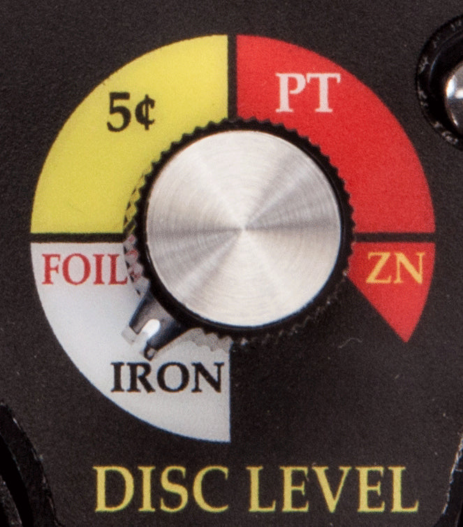 New TRI-COLORED ZONES with easy identifying and adjustment in discrimination level. The Full Range 180 Discrimination covers everything from ALL METALS to screw cap rejection. WHITE, YELLOW and RED Zones from 6 o’clock to 4 o’clock for easy reference to the user.