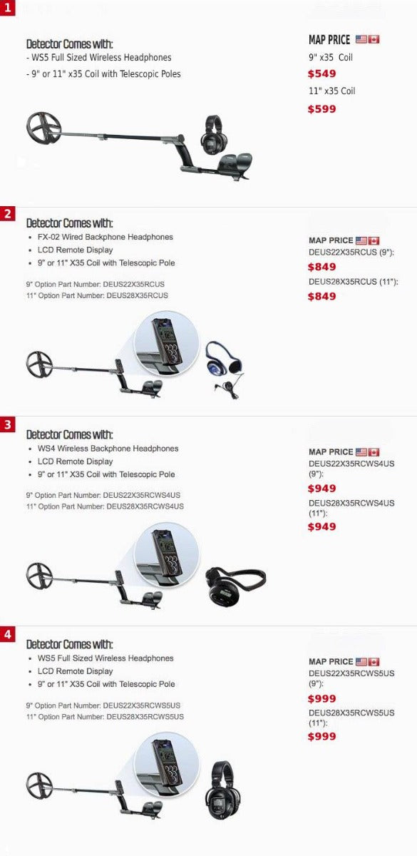 Please refer to the big picture below for pictures and breakdowns of the XP DEUS version 5.2 configurations.