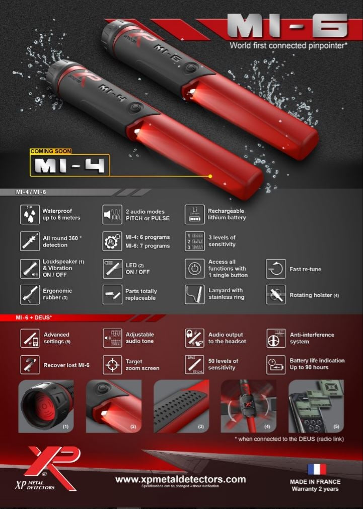 We are pleased to introduce another new product from XP, it is called the MI-4 pin point probe. Designed to be used by all prospectors at an attractive price, the MI-4 is equipped with the same MI-6 features without the Deus radio connection.