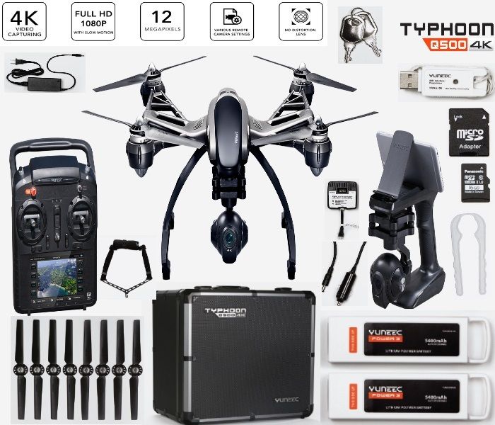 What comes in the box with the UNEEC Q500 4K Typhoon Quadcopter with CGO3-GB Camera, Steady Grip and Camera Aluminum Case (RTF):